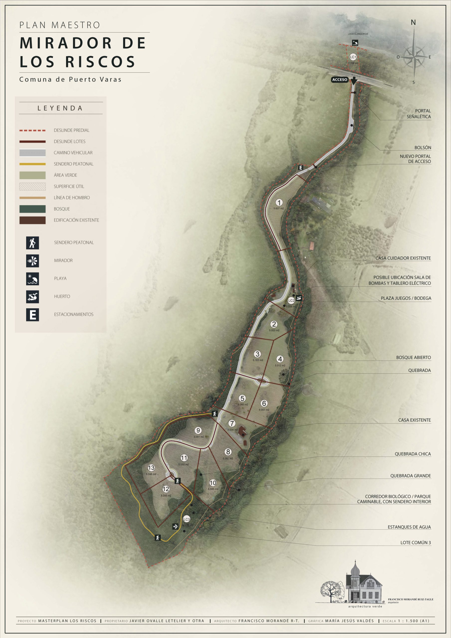 Todos los terrenos están orientados al norte y cuentan con suaves pendientes con impresionantes vistas al volcán Osorno y el lago Llanquihue.